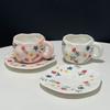 Overseas Hot-Selling Hand-Painted Strawberry Flower Ceramic Coffee Cup And Saucer Set High-Value Cup Cute Water Cup