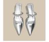 Pointed rhinestone low-heeled shoes girl 2025 new nude French fairy wind bag head half slippers one pedal women's shoes