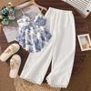 Kız Çocuk Moda Seti: Yaz Çocuk Çiçek Askılı Üst ve Pantolon İki Parça Set