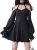 Gotik Seksi Elbise Vintage Kapalı Omuz Fener Kol Örgü Patchwork Kadife Mini Elbise Koyu Sokak Grunge Hepburn Tarzı Siyah Elbise Kadın için