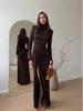 Sonbahar ve Kış Uzun Kollu Elbise Seksi Delikli Sırtı Açık Yuvarlak Yaka Yarık Kalça Sarma Elbise