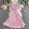 Kadın Kore Kalp Baskı Yaz Kısa Kollu Elbise Bandaj Tatil Plaj Büyük Salıncak Uzun Parti Elbiseler