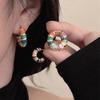 Tatlı Mine Gökkuşağı Rengi Daire Küpeler Yüksek Düzey Kişilik Moda Küpeler Taze Çok Yönlü Kulak Tokası Toptan