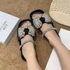 2024 new European flat-bottomed bow rhinestone slippers women's cross with satin open-toed fashion outer slippers