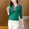 New Fashionable T-shirt for Women's Fake Two-piece Tops Long-sleeved Mother Spring and Autumn Clothes T-shirt Small Shirt Large Size Base Shirt