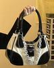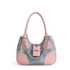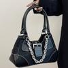 Preppy Stil Havalı Kız Metal Zincirli Punk Motosiklet Çapraz Askılı Çanta Omuz Postacı Çantası Ekleme Kumaş Vintage Kanvas PU Çanta