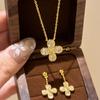 Dört Yapraklı Çiçek Kolye Kadın Işık Lüks Üst Düzey Kakma Zirkon Set