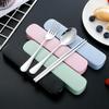 Stainless Steel Flatware Portable Cutlery For Outdoor Travel Picnic Dinnerware Set Metal Straw With Box And Bag Kitchen Utensil FMT2155
