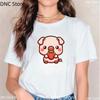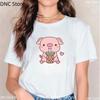 New Pink Pig Boba Tea Printed T Shirt Women Cartoon Animal T-shirt Casual Tops Bubble Tea Female Short Sleeve Streetwear Tshirt