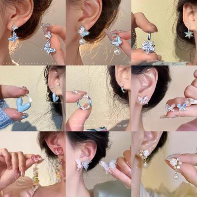 Sevimli Çizgi Film Moda Gümüş İğne Eğlenceli ve Sevimli Kedi Çiçek Küpeler Kızın Mizaç Çok Yönlü Tasarım Asimetrik Küpe