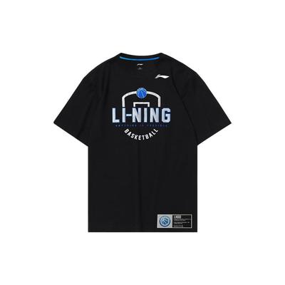 Li Ning CBA Harf Baskılı Nefes Alabilir Yuvarlak Yaka Bol Kesim Kısa Kollu Basketbol Forması Unisex forma Siyah ATSUA65-1