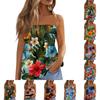 Kadınlar İçin Yazlık Tüp Üstler, Sevimli Seksi Omuz Düşük Çiçek Baskılı Kolsuz Tişört