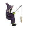 Resin Home Purple Witch Fishing Ornament Gift Funny Halloween Decoration Fishing Witch Sculpture for Ghost Festival Garden Yard