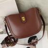- These handbags feature a trendy and stylish saddle - bag silhouette. The body is crafted from high - quality leather, showcasing a smooth and luxurious finish. A metallic "F" - shaped lock decorates the front flap, adding a touch of elegance and sophistication. The adjustable shoulder strap, along with the sturdy metal hardware, contributes to the bag's fashionable and durable look.