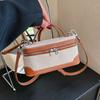 Vintage taşınabilir bowling çantası kadın yazlık üst düzey keten eklemeli Boston çanta kontrast renk omuz askılı postacı çantası