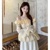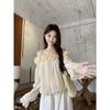 Tatlı Kız Tarzı Tasarım Anlayışı Çiçek Tek Omuz Kadın İlkbahar Yeni Slim Beyaz Üst