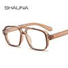 SHAUNA Square Women Wide Legs Glasses Frame Clear Anti-Blue Light Eyewear Optical Men Retro Rivets Decoration Frame