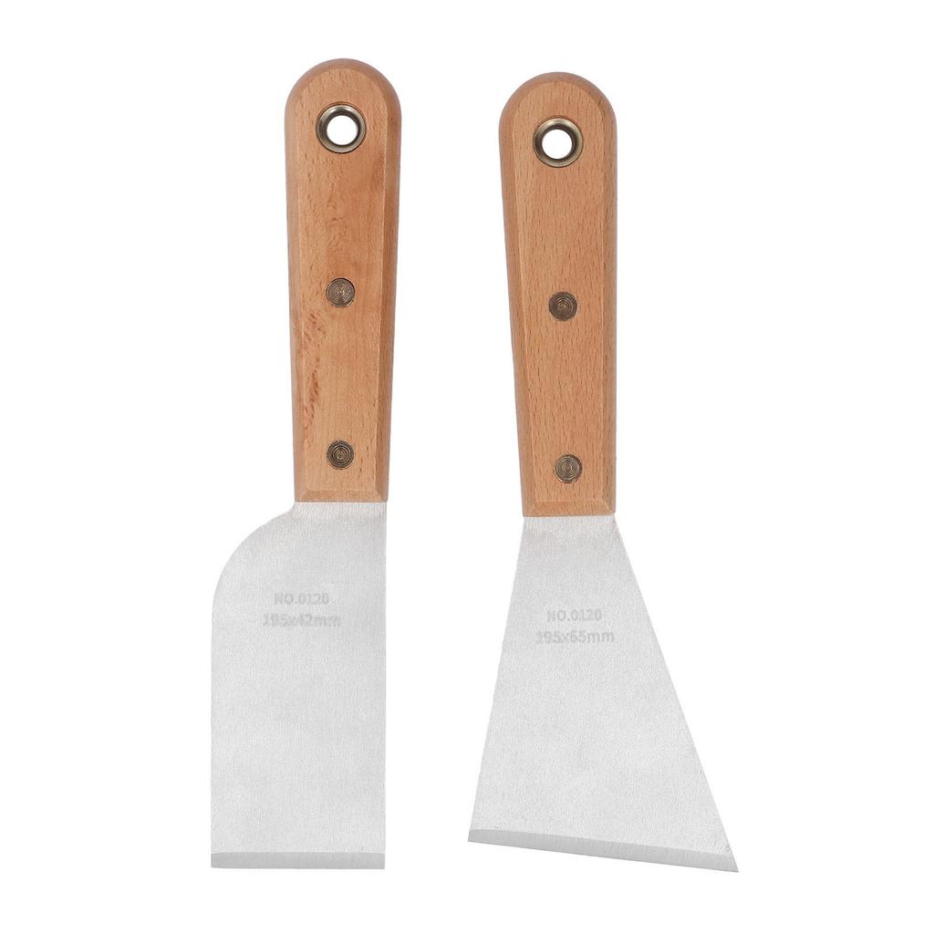 2Pcs Putty Scraper Stainless Steel Paint Scraper Set with Wood Handle Engraving Spackle Drywall