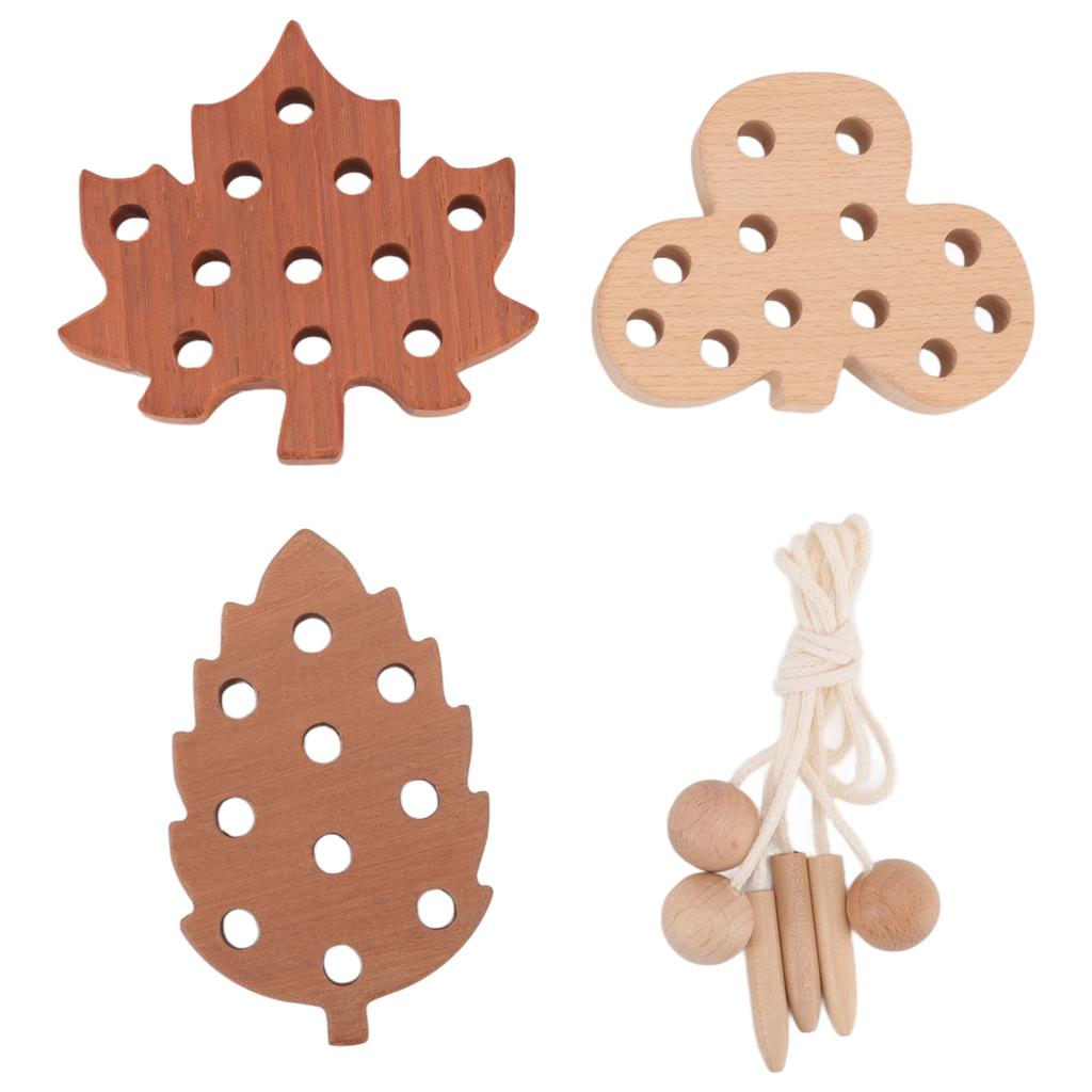 Threading Leaves Toys Set Wooden Thickened Recognition Educational Threading Game Toys Kit