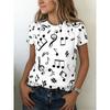 New Fashion Music T-shirt for Women's Round Neck Casual Classic Note Printing 3D Digital Printing Fun T-shirt 2870