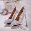 Women's high-heeled single shoes fashion sequined banquet wedding shoes waterproof table fine heel shallow mouth large size four-season shoes