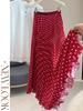 Kadın Günlük Boş Zaman Katlanabilir Puantiyeli Yüksek Bel Cepli Dökümlü Rahat Uzun Maksi Etek