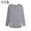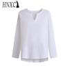 HNXC Pamuk Uzun Kollu Tişört Erkek Modası Bol Gömlek Baskılı Şefkatli Gömlek