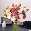 9Heads Roses Bouquet Artificial Flower Brown Coffee Rose Fake Rose Home Decoration Wedding