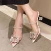Temperament half slippers women's new summer rhinestone high-end fashion pointed transparent high heels