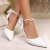 Yeni sivri burunlu sığ ağızlı fiyonklu yüksek topuklu kadın stiletto ünlü inci kelime kemer moda tek ayakkabı