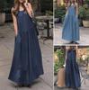 Yazlık Bol Salıncak Elbise Günlük Pamuk Keten Kolsuz Yuvarlak Yaka Düz Renk Büyük Beden Yelek