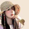Kadın Hasır Şapka Geniş Kenarlı Nefes Alabilen Hasır Örgü Şapka Renkli Boncuk Dekorlu Esnek Kenarlar Güneş Şapkası