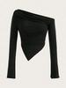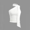 European and American one shoulder slanted shoulder ribbon scarf pleated vest