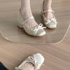 Pink ballet style thick heel single shoes women's 2025 new inner height increase skirt butterfly Mary Jane high heels
