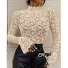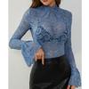 Women's Solid Color Lace Slim Fit Outerwear Flared Sleeve Top Casual Long Sleeved Top