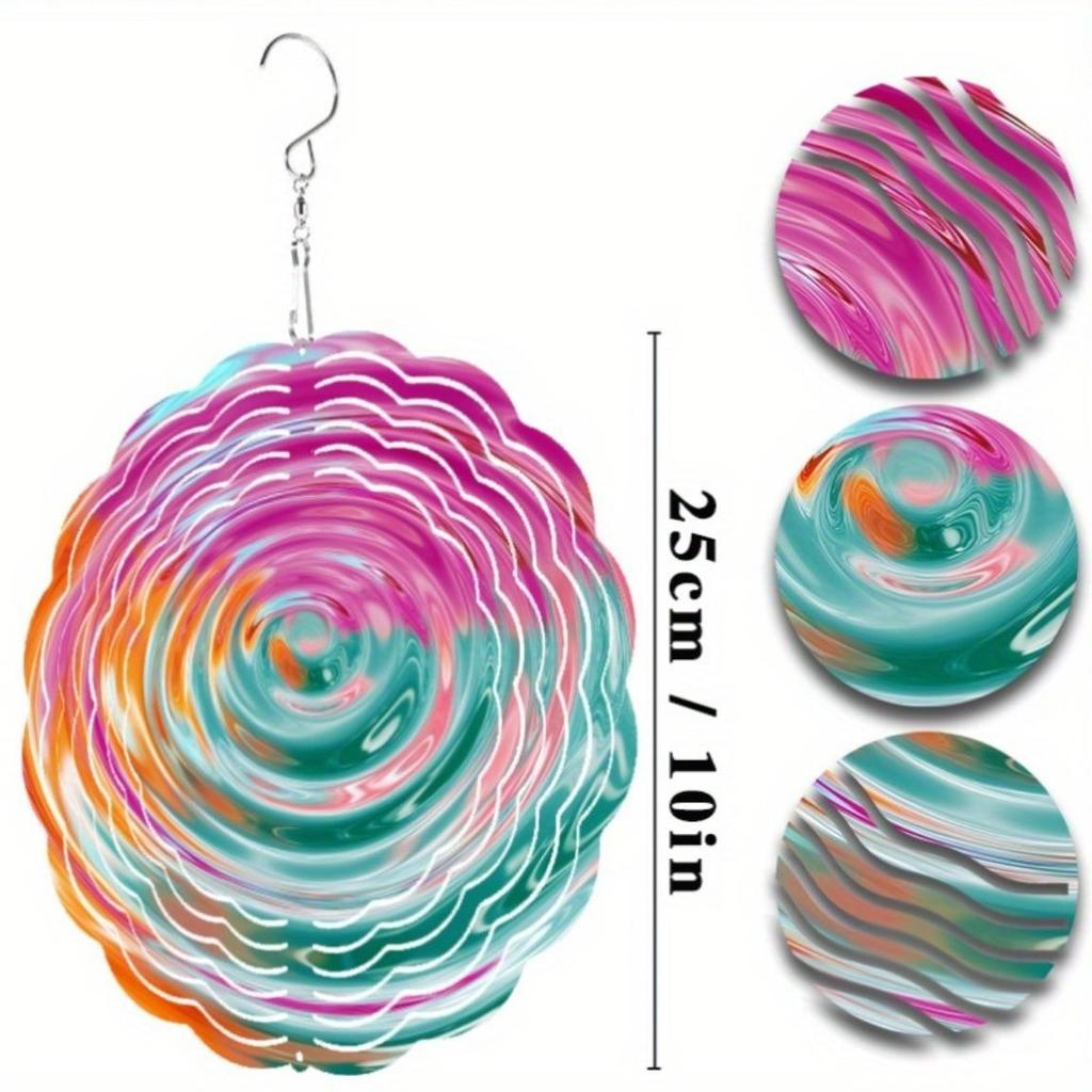 10-Inch Rotating Wind Spinner – Elegant Concentric Circles & Neon Spiral Design, 360° Swivel Hook for Balcony