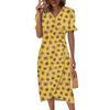 Women's V-neck Puff Sleeve Irregular Flower Print Hem Dress