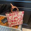 Kadınlar için etnik çiçekli kanvas çantalar feminen tote ahşap saplı kova çanta baskı tasarımı yeni moda