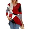 Womens Tops V-neck 3/4 Sleeve Blouses Casual Mid-length Shirts Fashion Print Tunic Tops