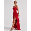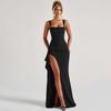 Sexy Women Sleeveless Ruffle Split Maxi Dress Summer Solid Spaghetti Strap Square Neck Cocktail Evening Party Sun Dresses