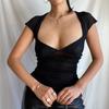 2024 Summer Women's Sexy V-Neck Backless Solid Slim Fit Short-Sleeve T-Shirt