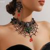 Halloween dark goth crystal spider necklace punk exaggerated imitation pearl beaded collarbone chain
