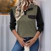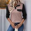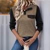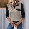 Women's Contrast Color Stitching Top Pullover Lapel Button Casual All-match Top