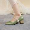 Mary Jane square head single shoes with thick heels single shoes splicing single shoes female celebrity with cheongsam