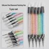 Silicone Nail Art Carving & Embossing Pen Set - 5 Pcs with Soft Heads & Rhinestone Penholder