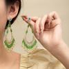 Leaf acrylic beaded fringed earrings retro niche high-end ear hooks fashion temperament versatile earrings