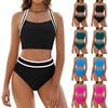 Kadın Bölünmüş Seksi Bikini Moda Yüksek Bel Sutyen Yastıklı Hiçbir Çelik Sütyen Mayo