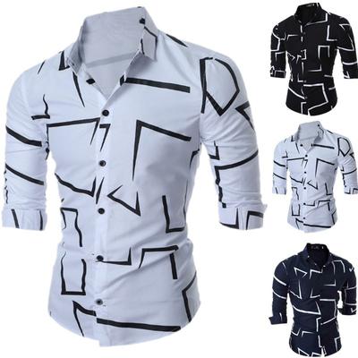 Erkek Moda Rahat Uzun Kollu Düğme Yaka Baskı Takım Elbise Gömlek Üst Bluz