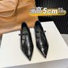 Sheepskin pointed tip with thick heel single shoes women's commuting temperament high heels shallow mouth retro Mary Jane shoes