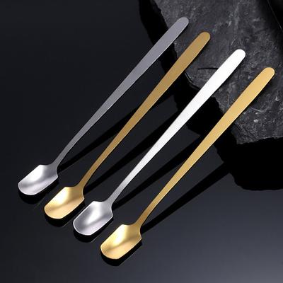 Yaratıcı Uzun Saplı Düz Başlı Kaşık Paslanmaz Çelik Kahve Kaşığı Pasta Tatlı Kaşığı Dondurma Çay Küçük Karıştırma Kaşıkları Sofra Takımı